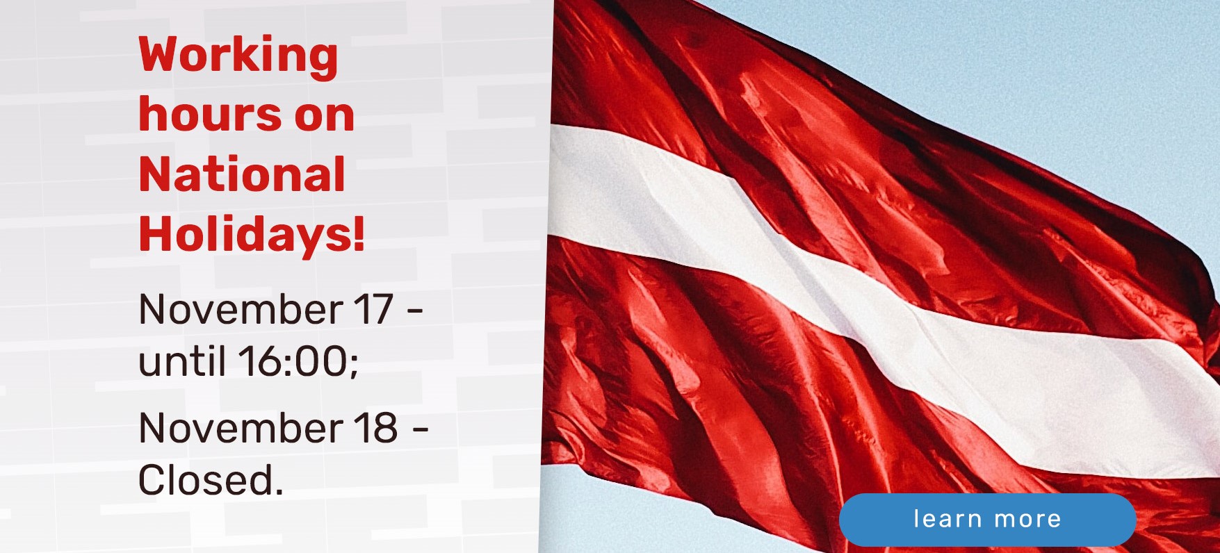 We want to inform you about our working hours on holidays!