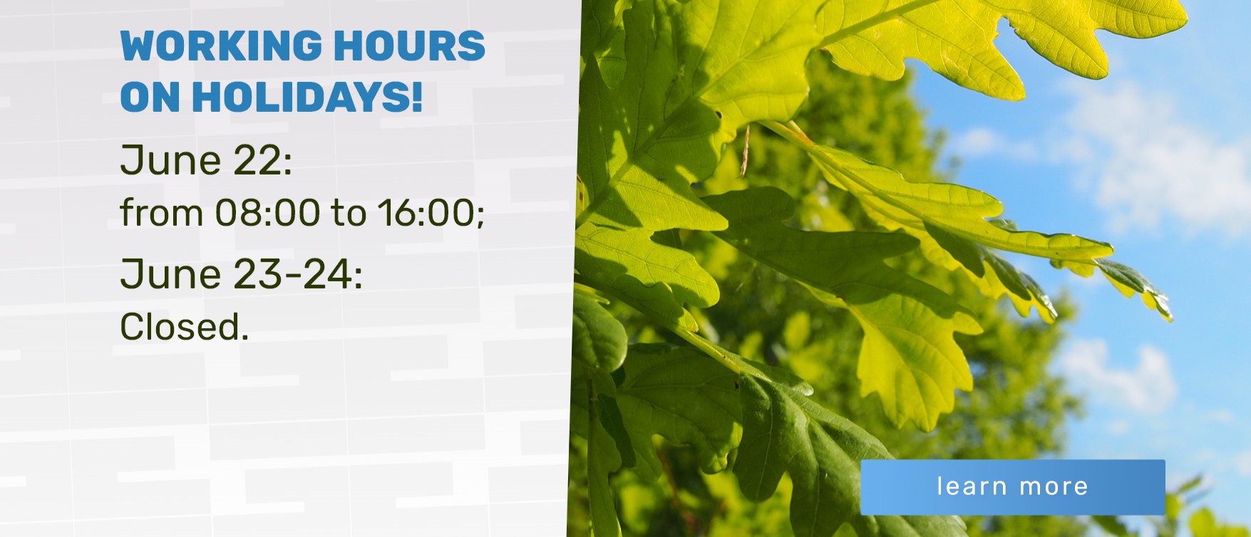 We are celebrating a traditional Latvian Ligo holiday! So, we want to inform you about changes in our working hours!