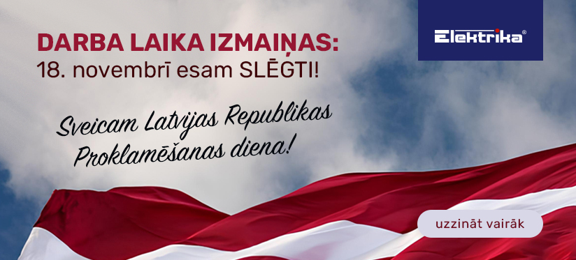 Informējam, ka 18. novembrī mēs ESAM SLĒGTI, sakarā ar Latvijas Republikas Proklamēšanas dienas svinībām.