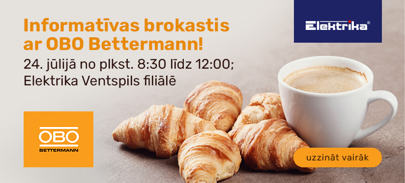 Šī gada 24. jūlijā no plkst. 8:30 līdz 12:00 SIA OBO Bettermann rīko brokastis SIA "Elektrika" Ventspils, Pētera iela 3.