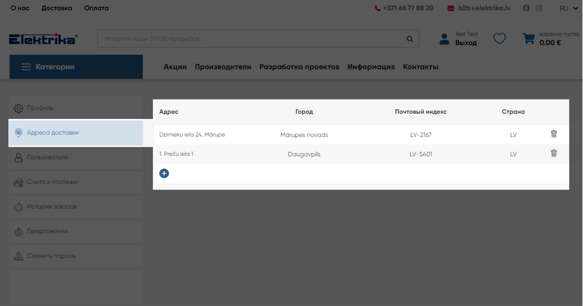 Во вкладке “Адреса доставки” вы можете сохранять несколько адресов, которые с легкостью сможете выбрать делая заказ.