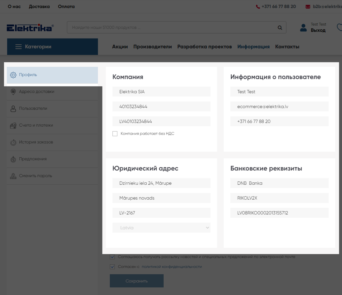 Далее введите данные компании и вашу контактную информацию. Нажмите на кнопку “Сохранить”.