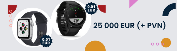 Оборот в интернет-магазине за период акции 25 000 EUR (+ НДС) – специальная цена 0,01 EUR на смарт-часы Apple Watch SE или Garmin Forerunner.