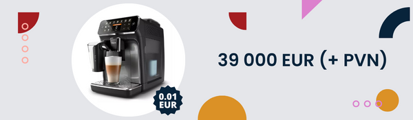 Оборот в интернет-магазине за период акции 39 000 EUR (+ НДС) – специальная цена 0,01 EUR на кофейный аппарат Philips.
