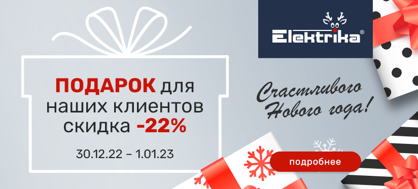 В праздничные дни мы с радостью дарим нашим клиентам скидку 22% на все электроматериалы!