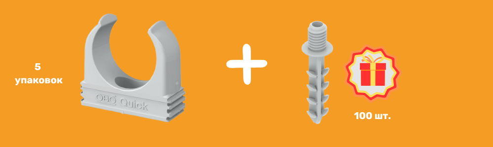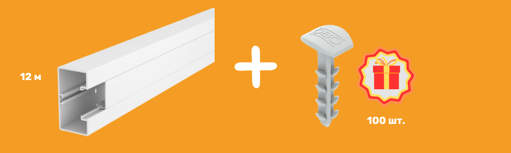 При покупке 12 м кабельных каналов OBO 53x100 RAPID 45 — получи в подарок 100 шт. Delta-Push дюбелей для кабельных каналов.
